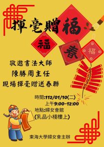 2023.01.10 新春揮毫活動 2023 年 1 月 10 日 https://thucwc.thu.edu.tw/wp-content/uploads/96e452f6-e100-4c82-9a50-83bc45605642.mp4 相關